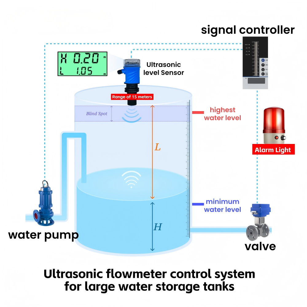 An ultrasonic level transmitter is a non-contact measuring device used to accurately detect liquid levels. It works by sending high-frequency ultrasonic pulses to the liquid surface and measuring the time it takes for the echo to return.